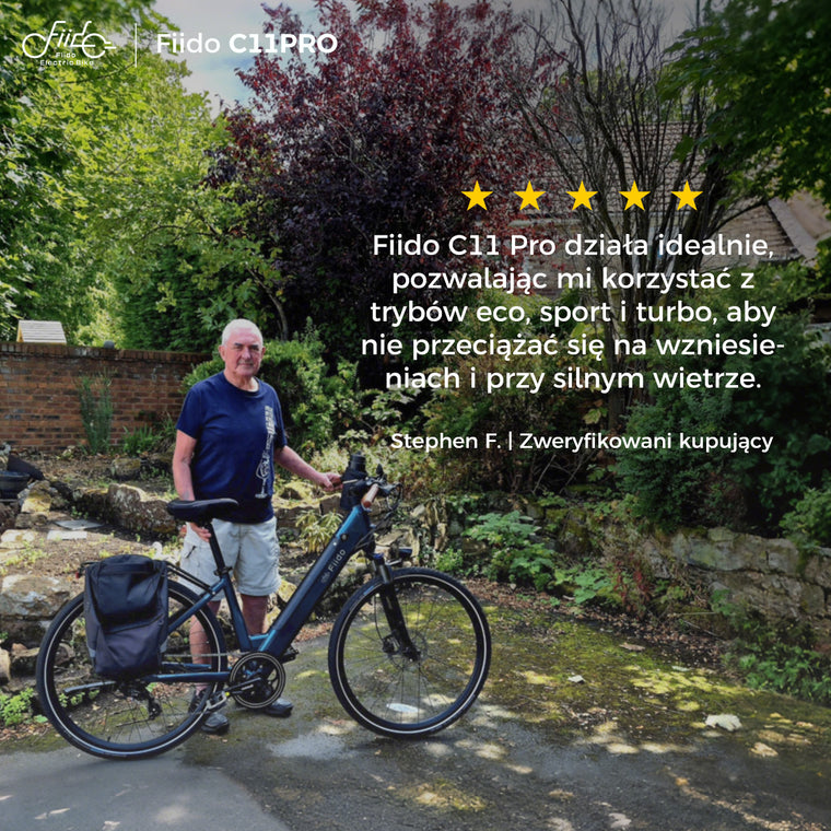 Na zasięg wpływają tryb wspomagania, teren, warunki wiatrowe, temperatura, nawierzchnia, przystanki w ruchu, waga rowerzysty, ładunek i ciśnienie w oponach.